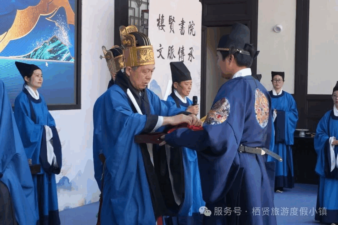 儒学文化是书院的根脉,礼制是开业的底色。开业当天,栖贤书院以正统国学礼制开篇,打造极具仪式感与文化感的开幕盛典,致敬千年耕读传承。从清晨的耕读探春祈福礼开始,祭祀、迎经、奉宝、启函、诵典、归文、开新七大传统国学环节依次呈现,庄重肃穆的仪式、古韵悠扬的氛围,将书院文化的厚重与雅致展现得淋漓尽致,让宾客在开篇便感受到书院独有的文化底蕴。